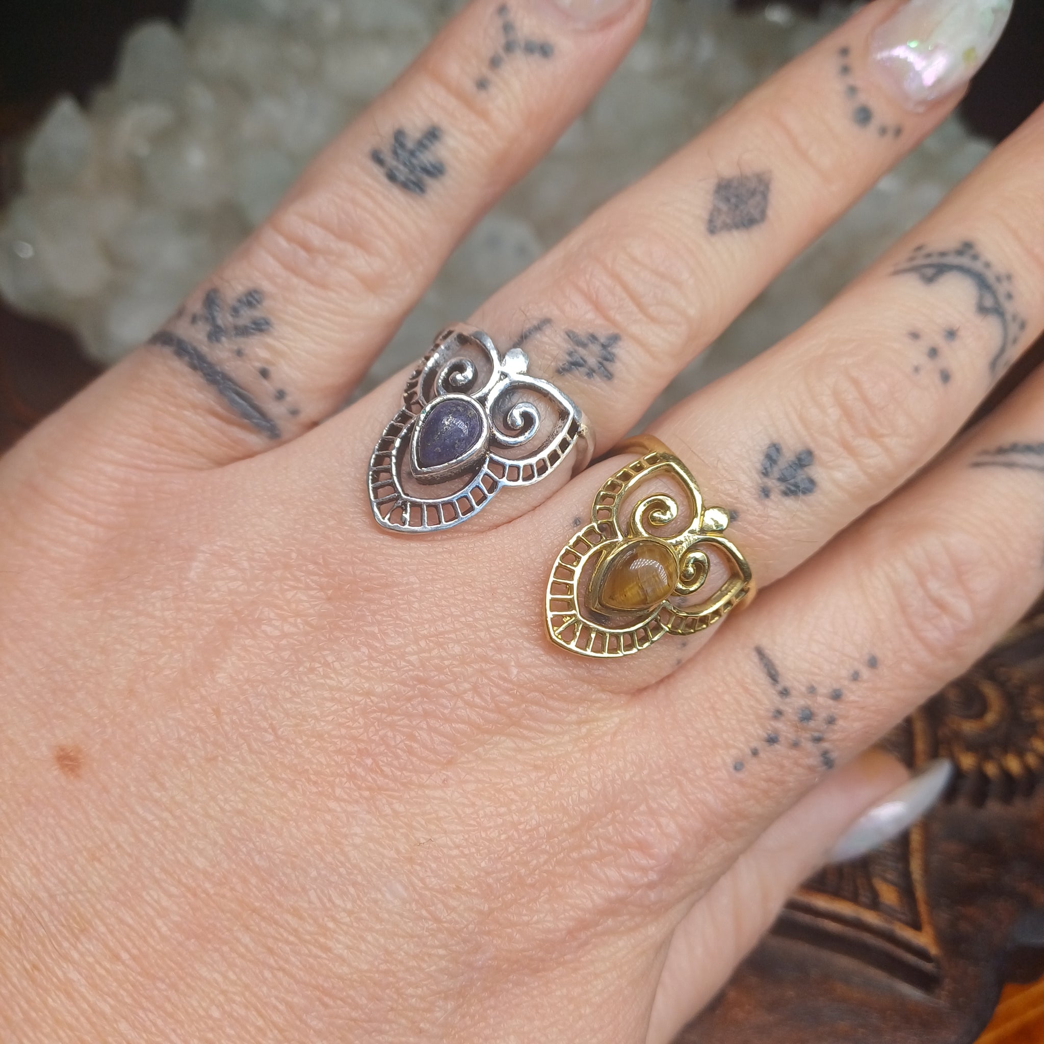 🔮 Available in brass, silver & featuring Tigers Eye and Lapis Lazuli